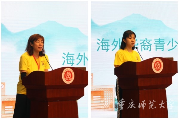 开营仪式上,全美华裔青少年协会老师王红艳、印度尼西亚巴中三语学校学生蔡佳玲分别代表领队和营员发言。王红艳表示,重庆是抗战英雄名城,享有世界桥都的美称,具有独特的巴渝文化,相信这期重庆营,会让海外华裔青少年收获满满、流连忘返。“自从三年前参加重庆的网上营,重庆就在我心里扎下了根,很早就想来美丽的山水之城重庆游览,现在我的愿望终于实现了!”蔡佳玲表示,将认真体验重庆的文化底蕴和民俗民情,感受高速发展的中国和山城重庆,展现海外华裔青少年的风采和良好精神面貌,在学习中加强交流、加深友谊。