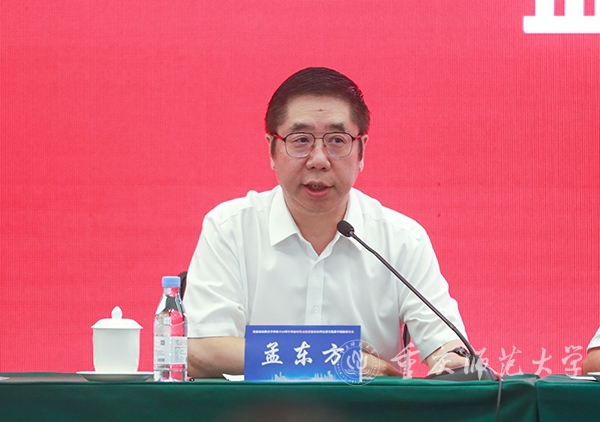 学校党委副书记陈志军,市教委宣教处处长李林齐,高等教育出版社文科事业部副主任王溪桥,Beat365官方网站原校长、马克思主义学院院长、教育部高等学校马克思主义理论类专业教学指导委员会委员、重庆市高校思想政治理论课教学指导委员会总教指委、副主任委员孟东方等出席会议并致辞。