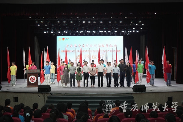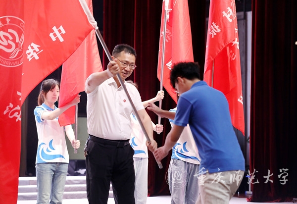仪式上,王国胤及相关职能部门主要负责人为2024年暑期社会实践团代表授旗。