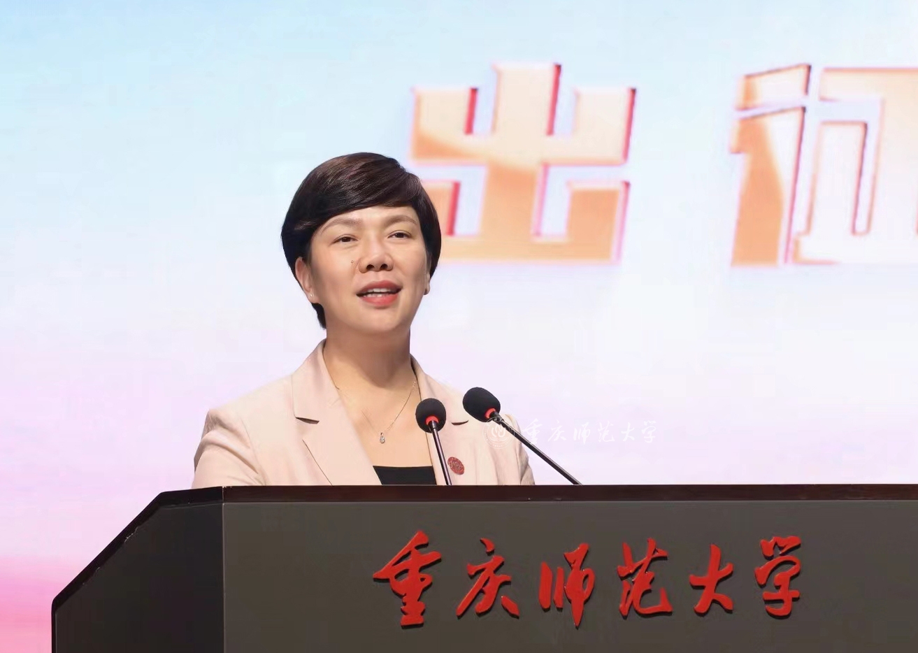 张艳代表学校党政向即将奔赴全国各地参加社会实践的师生们表示亲切的问候,向精心组织、周密部署本次活动的相关职能部门和学院表示衷心的感谢,对学校在历次“三下乡”社会实践活动中取得的成绩表示肯定。她强调,奋斗是青春最亮丽的底色,行动是青年最有效的磨砺,广大师生要牢记习近平总书记嘱托,上好社会实践这堂生动的“必修课”,坚持不懈以奋进之姿激扬青春,以优异成绩为学校70周年华诞献礼,不断为全面建设教师教育特色鲜明的高水平综合性师范大学贡献重师青年的力量。一是深入社会观察“求真知”。重师广大青年要深入广阔的社会大课堂,在重访历史现场和深入调查研究中探求中国之问、世界之问、人民之问、时代之问,在观察社会、服务基层中,深刻体悟习近平新时代中国特色社会主义思想的精神伟力,真切体验新时代推进中国式现代化建设的实践伟力,在学思践悟中了解国情、社情,了解社会所需、百姓所盼,把所思所想和发现的问题,融入到学习研究中,不断提升思想认知和技能学识。二是深入社会实践“强筋骨”。重师广大青年要敢于善于“自找苦吃”,以不怕苦、敢吃苦、能吃苦的坚毅品格,深入田间地头、院坝社区调查研究,在志愿服务基层、助力乡村振兴、传承中华文化等的社会实践“大熔炉”中锤炼技能、增长才干,不断增强融入社会、服务社会的过硬本领,展现重师青年自信自强、刚健有为的精神风貌与青春风采。三是深入基层社区“作贡献”。重师广大青年要脚踏实地,将学科专业优势与服务社会需求紧密结合起来,把科学研究的兴趣和社会需要、人民关切结合起来,将社会观察、调查研究、感悟思考等成果收获转化为助力基层发展的“金点子”,在躬行求实中提高发现和解决问题的能力,以自身所学切实回应人民群众在生产生活中的急难愁盼问题,在服务人民、奉献社会中彰显“重师人”的青年担当。