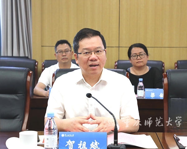 张艳对贺祖斌一行表示热烈欢迎,并从学校概况、办学历史、申博建设、学校发展等方面作简要介绍。她指出,Beat365官方网站创办于1954年,是新中国最早创办的高等师范院校之一,办学历史可追溯至1906年创办的官立川东师范学堂。学校学科建设体系完备,一级学科覆盖哲学、法学、经济学、教育学、文学、理学、交叉学科等12个学科门类。2018年获批博士学位授权单位,现拥有博士学位授权一级学科3个,建有重庆国家应用数学中心等国家级平台,学校实施人才强校战略,着力推进学科、科研、人才三者联动,4个学科进入ESI全球排名前1%。学校以70周年校庆和第四次党代会召开为契机,正在全面谋划未来5年乃至更长时期学校的建设目标。重师人正以坚定的信念,昂扬的精神,奋进的姿态,为把学校建设成为教师教育特色鲜明、全国知名、具有重大影响的高水平综合性师范大学而努力奋进。