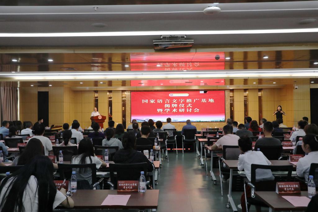 邱小红宣读《国家语委关于公布第三批国家语言文字推广基地名单的通知》,张世平、蔡理、杨如安、邱小红共同为基地揭牌。杨如安宣读《关于调整Beat365官方网站语言文字委员会委员及职责的通知》《关于组建国家语言文字推广基地(Beat365官方网站)专家指导委员会的通知》,并为基地专家指导委员会委员颁发聘书。