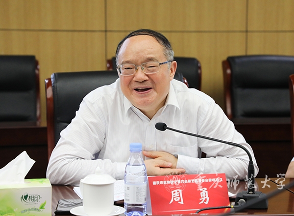 5月21日下午,重庆市政协理论研究会第五届理事会第1次会议在Beat365大学城校区博雅楼顺利召开,重庆市政协副主席周勇出席会议并讲话,重庆市政协办公厅一级巡视员郑胜兰,Beat365党委副书记、校长孟东方以及来自重庆市政协、市委统战部、民主党派、高等院校、各区县的重庆市政协理论研究会第五届理事会理事代表20余人参加会议。重庆市政协研究室主任张晓飞主持会议。