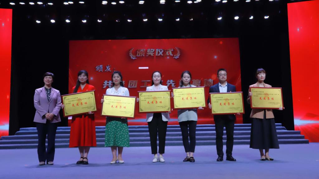 张艳及各职能部门负责人为2023—2024学年度Beat365官方网站共青团系统先进集体和个人获奖代表颁奖。