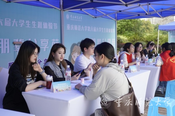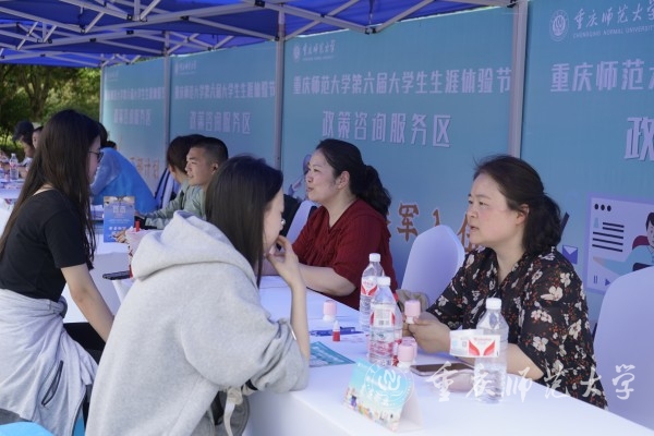 开幕式结束后,“户外主题日体验”活动正式开始。主题日共分生涯活动体验区、政策咨询服务区和朋辈互动交流区三个主题活动区。游戏体验区设置了“职行新体验”“职场欣认知”“职岗心匹配”等原创职业体验游戏;政策咨询服务区针对西部计划、参军入伍、基层就业、创新创业等开展政策解读与生涯咨询;朋辈互动交流区,优秀学子与同学们交流经验、答疑解惑、分享成长,主题日活动共吸引1500余人参加体验。