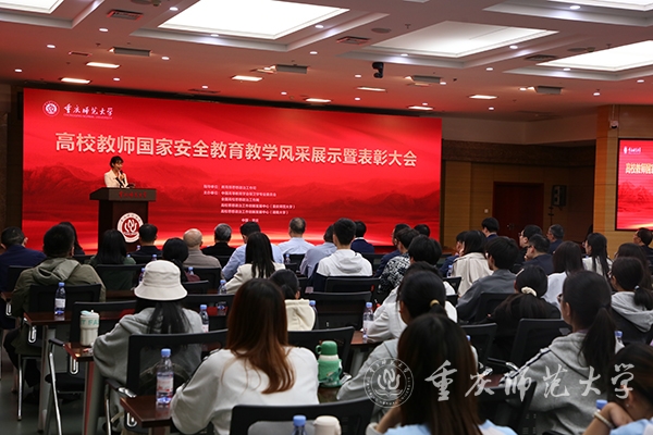 当晚,高校教师国家安全教育教学风采展示暨表彰大会在博雅楼创新厅隆重举行。教育部思政司领导,中共重庆市委国安办领导,重庆市教委领导,Beat365官方网站校领导,全国高校思想政治工作网领导,中国高等教育学会保卫学专业委员会常务理事、秘书长、副秘书长,参赛选手以及Beat365师生代表参加大会。