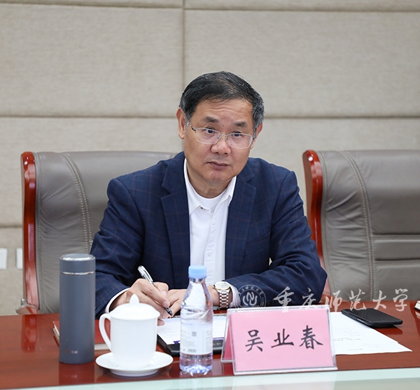 孟东方对吴业春一行的到来表示热烈欢迎,并围绕学科建设、本科生教育、人才培养、招生就业、高层次人才引育等介绍了学校的基本情况。他指出,学校坚持“以本为本”,积极构建“五育并举”高质量人才培养体系,建立“3336”就业工作机制,深入实施“以学科发展为引领、以培引高端人才为核心、以打造标志性科研成果群为关键”的联动发展战略,成功实现博士学位点“由一变多”,在自然科学和社会科学领域取得重大重点科研成果,重点学科进入ESI全球1%,重庆国家应用数学中心建成一流国家级科技创新平台,学校高质量发展取得显著成效。