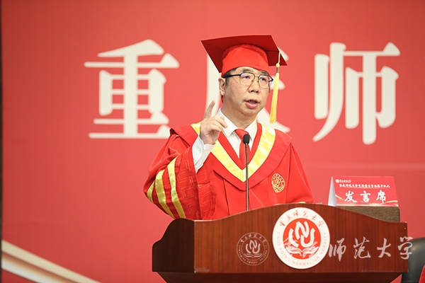 博士毕业生代表刘晓亮表达了对母校的不舍之情,向领导、师长、亲人和同窗好友们给予的支持与帮助表示由衷感谢。他谈到,博士期间同学间建立了牢固的友谊、同门间打下了深厚的情义,每当遇到困难,大家总是相互扶持、守望相助、共同勉励,重师考古是一个小家庭,重师母校是一个大家庭。未来,必将牢记“厚德、笃学、砺志、创新”的校训,心向祖国、心向人民,做有理想、敢担当、能吃苦、肯奋斗的新时代好青年,与广大重师学子共同续写母校新的荣耀与华章。
