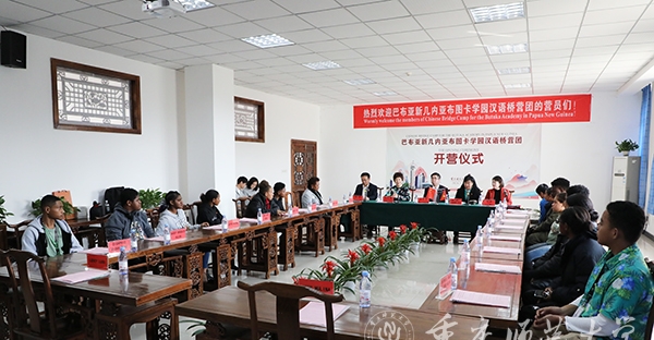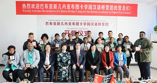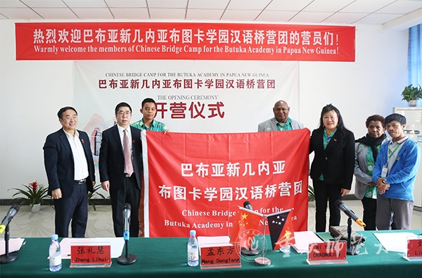 学校国际汉语文化学院、国际合作与交流处主要负责人,巴布亚新几内亚科技大学孔子学院中方负责人、巴布亚新几内亚布图卡学园董事会负责人以及全体营员参加开营仪式。