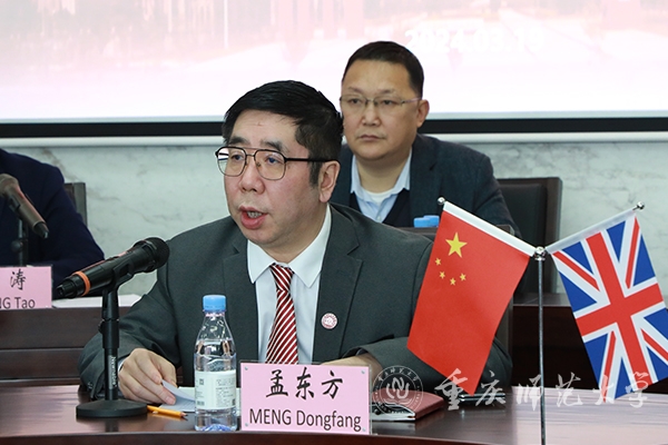 孟东方对英国知山大学派遣外教来渝授课、组织学生赴英参加夏令营,为合作项目顺利实施表示感谢,并分享了近一年来Beat365生物学学科建设、科学研究、社会服务等方面取得的新成果。他表示,两校要持续加强合作,希望英方通过帮助项目学生提高英语能力、打通本硕连读通道、增设奖学金等方式吸引更多项目学生赴英学习深造,也欢迎知山大学能有师生来Beat365进行访问访学、学分互换。孟东方强调,双方需紧密协作、互相配合,全面梳理四年来的办学成果,认真准备评估材料,共同迎接中国教育部对项目的评估检查。孟东方还向知山大学师生发出邀请,欢迎其来渝参加学校70周年校庆活动。