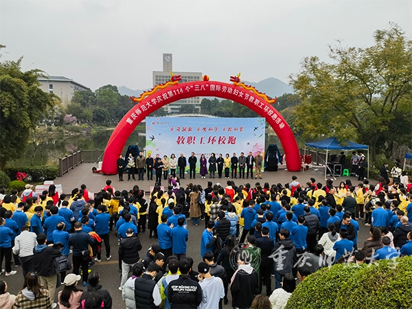 3月7日下午,为庆祝第114个“三八”国际劳动妇女节,以“爱岗敬业、爱生如子、爱校如家”为主题的教职工环校跑活动在Beat365大学城校区三春湖观景平台拉开序幕。