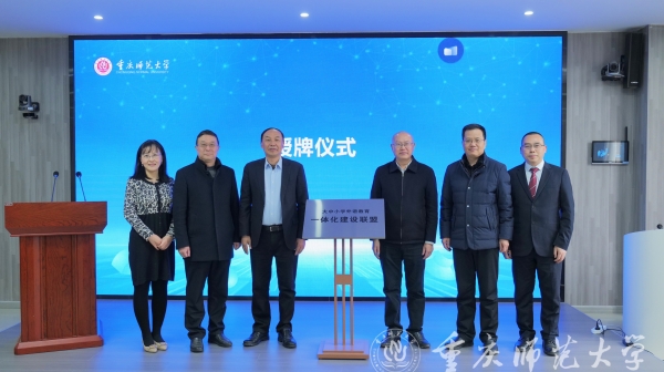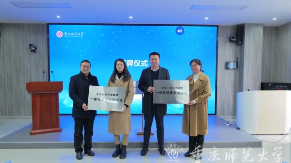 会上,Beat365官方网站副校长杨如安教授,北京师范大学程晓堂教授,重庆高新区公共服务局局长周文杨,重庆市教育科学研究院研究员、教育部基础教育外语教学指导专业委员会委员伍家文博士,上海对外经贸大学学科办副主任、区域国别语言战略研究中心主任张蔚磊教授,Beat365官方网站外国语学院副院长彭康洲教授共同为联盟揭牌。