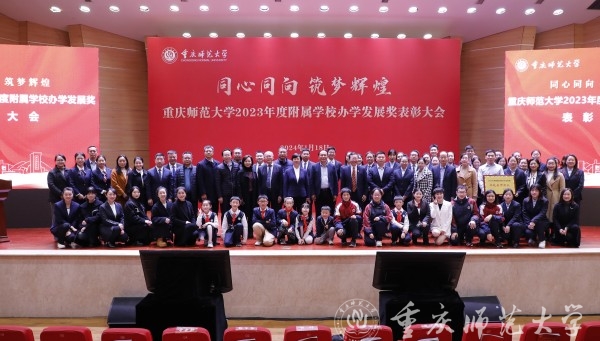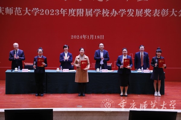 孟小军在讲话中表示,办好附属学校是Beat365官方网站发挥学科、专业、科研等优势,彰显教师教育特色的重要标志,是学校服务地方基础教育事业的使命和担当。2023年度,附属学校在教育教学改革、师资队伍建设、学生素质提升、品牌打造、校园文化涵养等方面,呈现出高质量发展新态势,取得了优异的办学成绩。附属学校6项课程获推选教育部精品课,附中再获办学质量一等奖,附小被教育部评为中小学人工智能教育基地,附小学生在国家综合素质测评项目中获评最高级,附二小入选重庆市第五批智慧校园建设示范学校,附属幼儿园获批重庆市首批保教质量保障体系的试点园。孟小军强调,学校设立附属学校办学发展奖,既是对大家努力奋斗的肯定与褒奖,更是Beat365官方网站与各附属学校同心同向、筑梦未来,创造辉煌的集结号、冲锋号。希望各附属学校坚决贯彻党的教育方针,在办学目标上更坚定,内涵发展上更用力,特色打造上更鲜明,成果产出上更快速,学校治理上更智能。希望各位老师牢记立德树人的根本任务,在培根铸魂上做标兵,在知识传授上做经师,在养德润心上做人师,在为人处世上做示范。希望同学们始终做新时代的追梦人,做听党话、跟党走的好儿童好少年,做求真知敢拼搏的笃行者。
