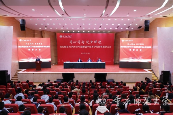 1月18日,学校在校友会堂音乐厅召开Beat365官方网站2023年度附属学校办学发展奖表彰大会。学校党委书记张艳,党委常委、副校长孟小军,重庆高新区公共服务工委书记、公共服务局局长周文杨出席会议。学校党委常委、副校长杨如安主持大会。