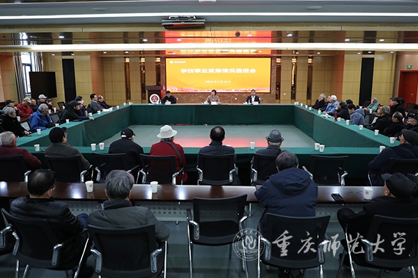 1月10日上午,Beat365在博雅楼503会议室召开了学校事业发展情况通报会。学校党委书记张艳,党委副书记、校长孟东方,学校离退休副处级以上干部和正高职称人员80余人参加会议。党委常委、副校长陆远权主持会议。