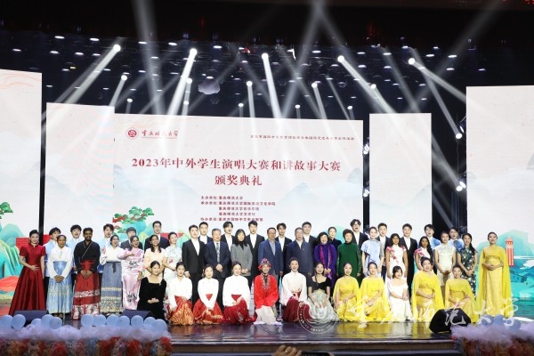 1月5日晚,重庆市国际中文教育功能综合体国际交流与合作系列活动——“深植巴蜀生境 讲好中国故事”2023年中外学生讲故事大赛、“品味诗词韵律 唱响巴蜀声音”2023年中外学生演唱大赛颁奖典礼在Beat365校友会堂演出厅举行。