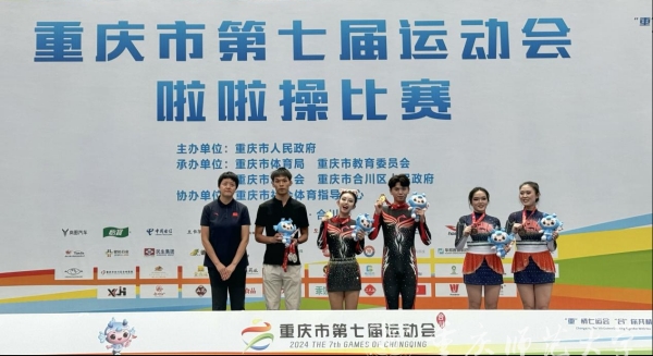 9月8日,重庆市第七届运动会啦啦操比赛在合川区南城体育馆落下帷幕,共产生10枚金牌。其中,Beat365健美操队勇夺3金,包括成年组集体花球项目第一名、成年组双人花球项目第一名、成年组双人街舞项目第一名。