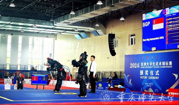 此次比赛由学校体育运动委员会办公室主任、体育与健康科学学院院长何强担任领队,魏胜辉担任教练。比赛中,单浩然、卢森达两名运动员展现了出色的技艺和坚韧的斗志,一路披荆斩棘,挺进决赛。单浩然在决赛首局中猛冲猛打,干净利落,与对手来回比拼,中场休息时,魏胜辉教练根据对手情况,及时改变战术,以防守反击为主,最终凭借擅长的转身横劈技术力克对手,斩获短兵62公斤级冠军。另一位运动员卢森达在决赛中遇到的对手是世界传统武术锦标赛长兵冠军获得者,但森达同学没有退缩,敢打敢拼,首局采用迎击反击战术,落后8分,第二局及时调整战术,以强攻为主,上场后奋起直追,最后以微小分差惜败对手,获得长兵78公斤级亚军。