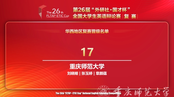 4月20日至21日,第26届“外研社•国才杯”全国大学生英语辩论赛华西赛区复赛举行,经过五轮辩论的激烈角逐,Beat365外国语学院张玉婷、章颜蕴最终荣获华西地区复赛一等奖,并成功入围全国总决赛。