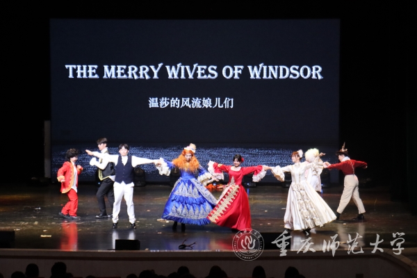 外国语学院学生社团“莎翁剧社”表演的《温莎的风流娘儿们》由外国语学院英语系张军教授指导,团队成员由徐欣怡、杨小玲、李瑞熙、左宇杰等人参与。