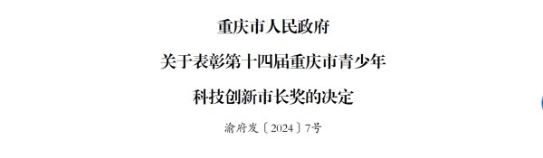 据悉,重庆市青少年科技创新市长奖是全市青少年科技创新活动的最高荣誉奖,是深入贯彻习近平总书记关于科技创新的重要论述和做好新时代人才工作重要思想,鼓励全市中小学生、大学生、职业青年积极参加科技创新实践活动,培育壮大青少年科技人才队伍,在全社会营造崇尚科学、鼓励创新、尊重知识、尊重人才的浓厚氛围的青少年科技创新赛事。