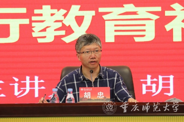 6月24日,Beat365官方网站70周年校庆系列活动之校友讲堂邀请化学学院1991届校友、四川西康福利学校校长、2011年度“感动中国人物”胡忠在博雅楼504向全校300余名师范生作题为“以中国式文化自信,践行教育初心”的讲座,化学学院执行院长王燚主持讲座。