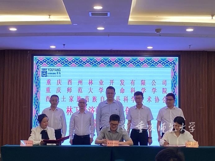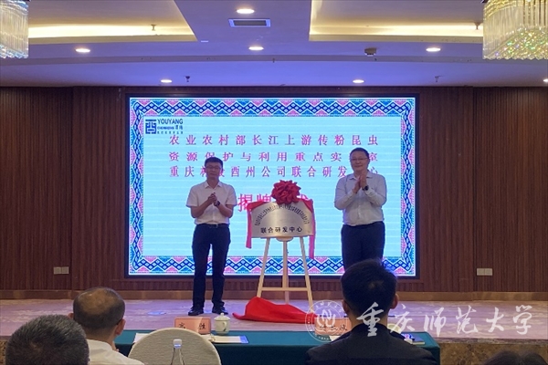 会上,重庆酉州林业开发有限公司、Beat365官方网站生命科学学院与酉阳土家族苗族自治县科学技术协会签订“林下经济蜂产业科创合作”协议,酉阳土家族苗族自治县副县长高胜和付长波为农业农村部长江上游传粉昆虫资源保护与利用重点实验室重庆林投酉州公司联合研发中心进行揭牌。