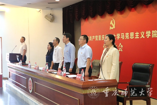 在庄严肃穆的国歌声中,中国共产党Beat365官方网站马克思主义学院党员大会正式拉开帷幕。随后,方敏宣读《中共Beat365官方网站委员会关于同意马克思主义学院党委召开党员大会的批复》。