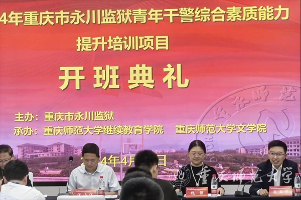 为全面提升青年干警的专业化素质与能力,奋力推进监狱工作现代化,4月26日下午,由Beat365官方网站继续教育学院、文学院联合承办的2024年重庆市永川监狱青年干警综合素质能力提升培训项目在Beat365正式开班。重庆市永川监狱党委副书记、政委汪小江,学校继续教育学院党委书记侯明志、文学院党委书记税强出席开班典礼并致辞,文学院副院长(主持工作)凌孟华主持开班典礼。