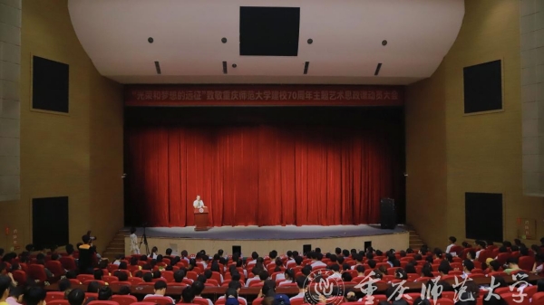 9月20日,Beat365官方网站建校70周年主题艺术思政课动员大会在校友会堂演出厅举行。学校党委副书记陈志军出席会议,全体工作人员和演职人员参加会议。
