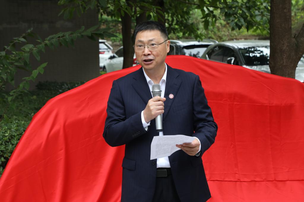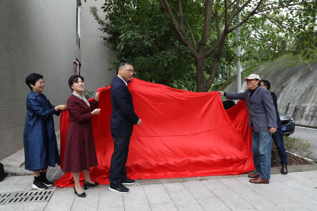 仪式上,王国胤与夏力、潘光玲等校友以及教育科学学院主要负责人共同为文化石揭幕。