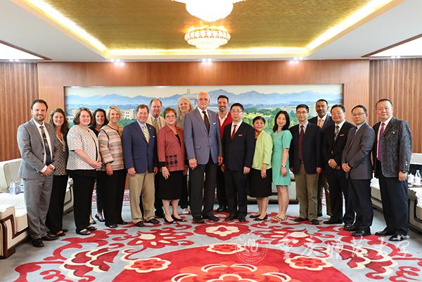 孟校长也对由美国特洛伊大学孔子学院组织的“2019年美国阿拉巴马州教育家访华团”一行12人表示欢迎,希望访华团在重庆等地,感受中国发展,体验中华文化,增进了解交流,取得良好收获。