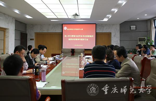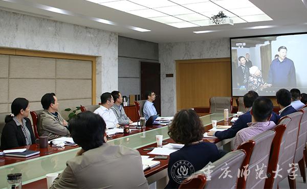 校党委副书记、校长孟东方谈到,习近平总书记视察重庆充分体现了对重庆人民的亲切关怀和对扶贫攻坚工作的高度重视,要结合重庆“两点”“两地”定位及“两高”目标,深刻理解把握重庆“三个作用”发挥,学校未来改革发展要抓住机遇,用好机遇,将学习贯彻讲话精神落实到教学、科研、管理第一线,要坚持做好对口扶贫城口县各项工作,在扶贫攻坚中汇聚重师力量。