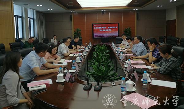 4月24日上午,永川区区委常委、区新城建管委党工委书记邓文一行到访Beat365,就Beat365同永川区大数据产业园进行政校企合作进行了具体而深入的交流。Beat365党委常委、副校长杨新民及相关学院、部门领导参与此次洽谈会。会议由对外联络与合作中心副主任李科主持。