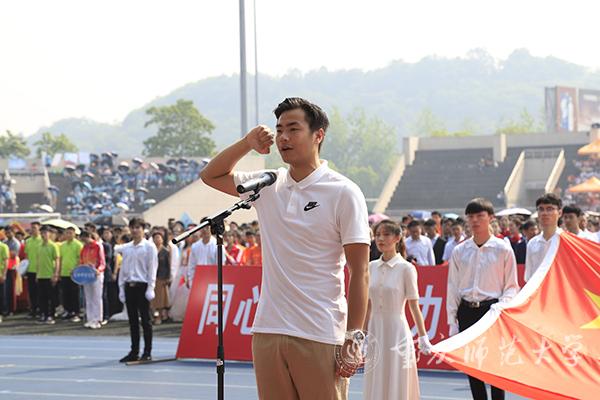 本届运动会运动员代表杨宏锦、裁判员代表任宇晗随后依次进行了庄严宣誓。