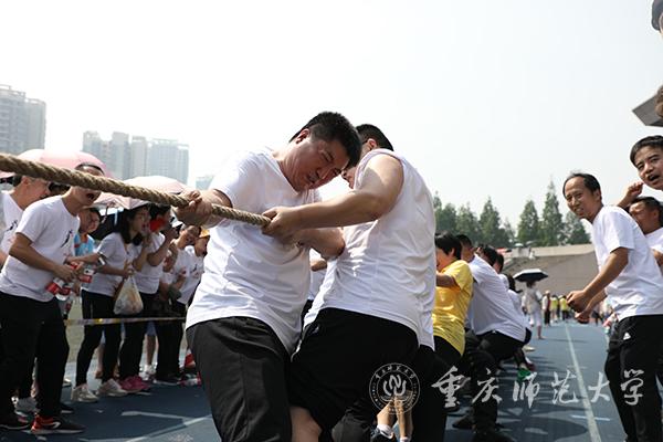 开幕式结束后,教职工拔河比赛随即举行,拉开了运动会比赛序幕。