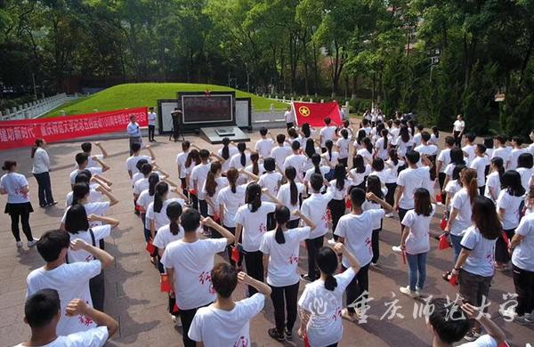 为激励和引领Beat365团员青年大力弘扬以爱国主义为核心的伟大民族精神,坚定“四个自信”,矢志投身新时代夺取中国特色社会主义伟大胜利的新征程,4月21日,校团委在歌乐山烈士陵园红岩魂广场开展“青春心向党·建功新时代”主题团日活动。校团委书记毛霞、相关工作人员、青马中高级班学员代表以及第二十九期“菁英计划•学生干部培训班”成员代表等参加。