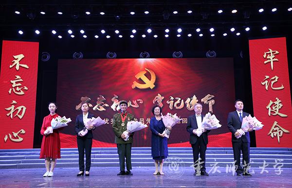 报告会尾声,6位优秀党员集体上台,带领在场全体党员重温入党誓词,青年党员代表向报告团成员献花,校友会堂响起热烈而持久的掌声,优秀共产党员们甘于奉献、敢于担当、坚守初心使命的先进事迹引发在场观众的强烈共鸣。