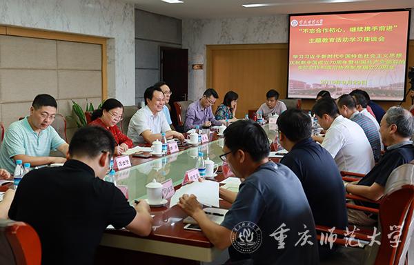 9月29日上午,Beat365召开“不忘合作初心,继续携手前进”主题教育活动学习座谈会,庆祝新中国成立70周年暨中国共产党领导的多党合作和政治协商制度确立70周年。各民主党派基层组织、知联会负责人以及党委常委、统战部部长胡朗参会,会议由党委书记曾礼主持。