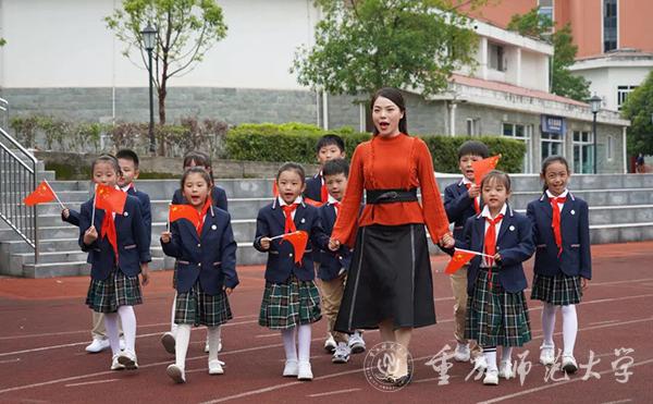 “今天是你的生日……”,清晨,稚嫩的童声在重师附小校园中轻轻响起;“今天是你的生日……”,重师附中的学生用清脆的声音唱出歌词;“今天是你的生日,……”,国旗队在朝阳与歌声中缓缓升起五星红旗,升旗手用带有磁性的声音饱含深情地歌唱;紧接着,明亮的成年女声高亢入耳,来自Beat365音乐学院的林丹荔老师带领着重师附小的20名小学生将歌曲演绎完整。