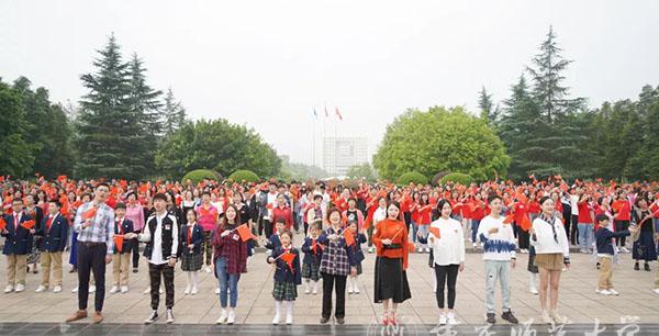 “你有一个梦,我有一个梦,编织一个美丽的中国……”,在重师附中,重师师生与附中的同学们在林荫道上携手唱起了《中国》,他们青春正好,同学少年,正用歌声与笑容谱写着逐梦的乐章。