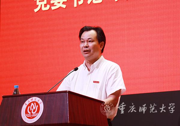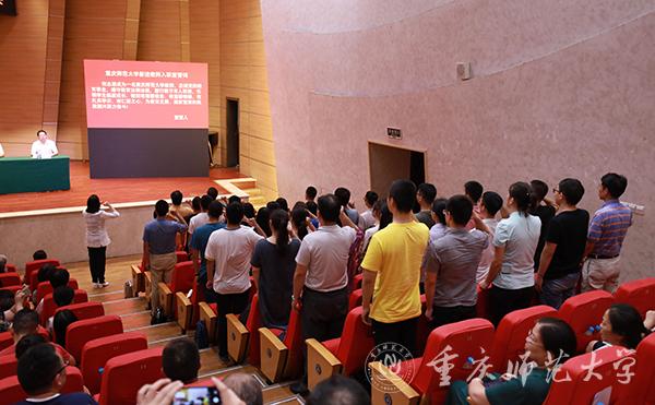 三要爱校荣校,做建设重师的贡献者。曾书记谈到,“入得重师门,便是重师人”,重师人的未来与重师的发展是命运共同体。今年教师节新增的新进教职工宣誓仪式,是为了让教师牢记誓言,强化教师身份意识,自觉担当职责使命,爱校荣校、顾全大局。曾书记强调,学校正深入推进双一流建设,深化内涵式发展。教师要把自身的事业理想融入到学校发展中,助力学校发展的同时成就自己,为学校更加辉煌的明天多做贡献;要种好责任田,凝聚正能量,争做新时代“好老师”,为建成教师教育特色鲜明、全国知名、具有重大影响的高水平综合性师范大学而努力奋斗!