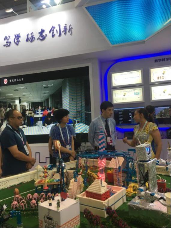 展览期间,市教委主任舒立春、市教委科技处处长蒋云芳、市教委高教处副处长吴岚等领导莅临Beat365展馆指导,仔细了解各项参展项目情况。舒立春主任对参展成果及智博会筹备工作给予了充分肯定。