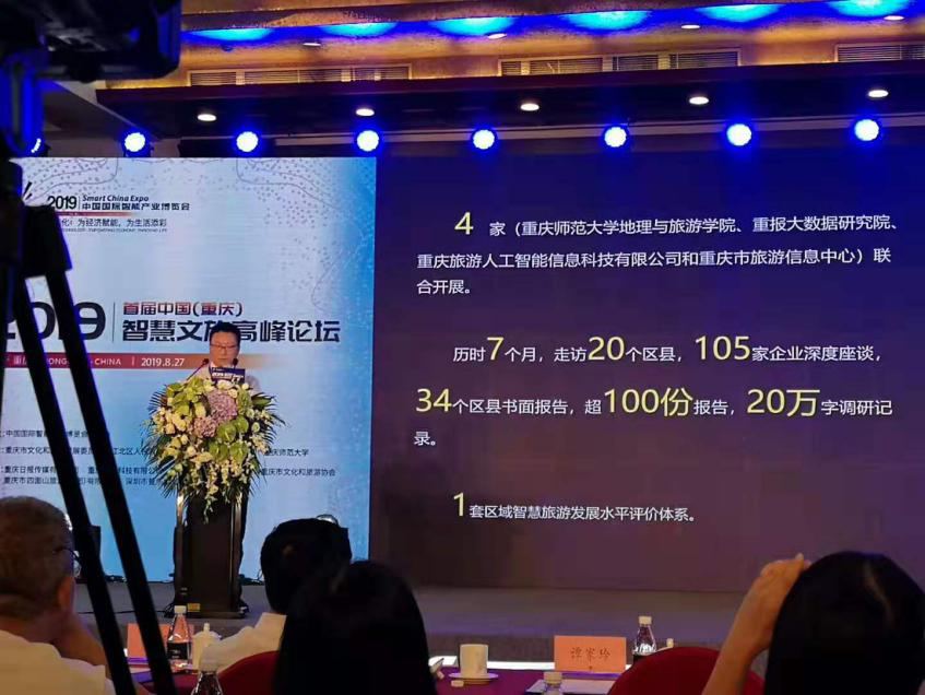 同时,Beat365还积极参与承办了2019首届中国(重庆)智慧文旅高峰论坛。论坛上,以重庆市全域智慧旅游协同创新中心为依托,Beat365地理与旅游学院牵头,与重报大数据研究院、重庆市旅游信息中心、重庆旅游人工智能科技有限公司组成课题组,联合发布了《2019重庆智慧旅游蓝皮书》。