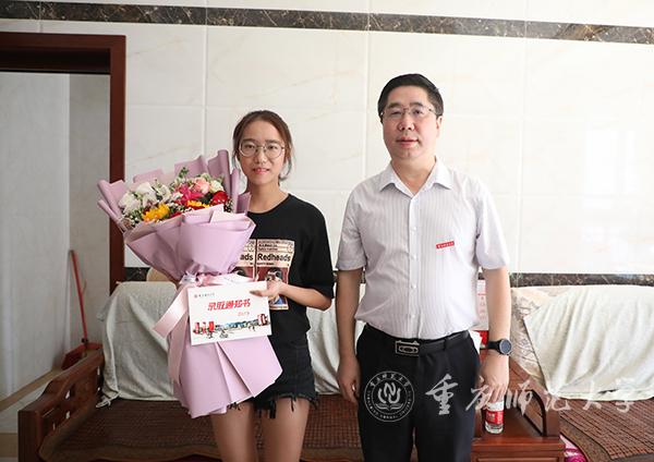 校长孟东方在学校党委宣传部、招生就业处及外国语学院相关负责人的陪同下,来到朱利娜位于璧山区青杠街道的家中,亲手将录取通知书送到朱利娜手中。向朱利娜及家人表示热烈祝贺后,孟校长亲切地询问了朱利娜报考Beat365及英语专业的初衷。孟校长鼓励朱利娜入校后好好学习,多交朋友,多参加学校活动与社会实践,全面提升自己,争取成为优秀毕业生,实现自己的梦想,为国家培养更多的优秀人才。孟校长还专门邀请朱利娜的父母到校观看新生开学典礼,见证孩子的成长。