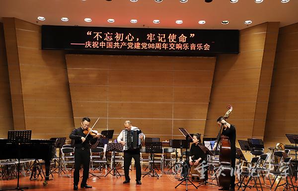 在中国共产党成立98周年之际,为了表达对党的感恩之情,校党委组织部、党委宣传部、党委统战部联合Beat365音乐学院语航交响乐团举行了“不忘初心、牢记使命”庆祝中国共产党成立98周年主题交响音乐会,隆重庆祝党的生日。
