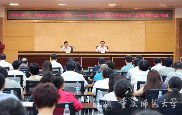 曾礼书记在总结讲话中指出,刘宴兵副主任的报告内容精炼、针对性强。他进一步强调指出,职能部门及学院负责人要在重庆高等教育高质量发展的大环境大形势下,进一步落实学校本科教育大会确定的各项目标任务,推动学校向教师教育特色鲜明的高水平综合性师范大学目标不断迈进。