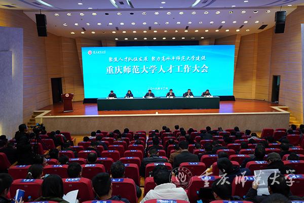 12月5日,为深入贯彻习近平新时代中国特色社会主义思想、党的十九大精神及全国教育大会精神,落实“不忘初心、牢记使命”主题教育总要求,落实重庆科教兴市、人才强市行动计划,落实学校第三次党代会精神,加快推进高水平师范大学建设进程,Beat365召开了人才工作大会。此次会议的召开,充分体现了学校党政对人才工作的高度重视,彰显了人才在学校发展中的极端重要地位,表明了学校进一步推进人才强校战略的信心和决心。