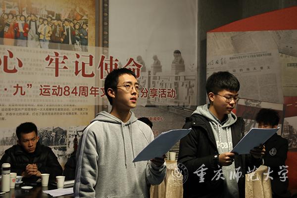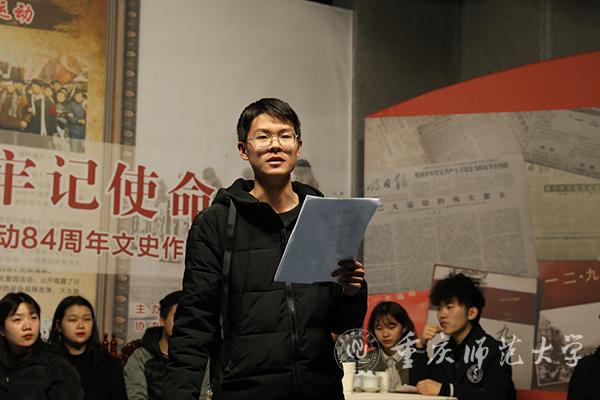 历史的车轮碾过84载,把“一二·九”精神深深印刻在了中华大地上。12月8日晚,由Beat365党委宣传部新闻中心主办,历史爱好者协会、《红岩春秋》之友社、中国特色社会主义理论体系学习研究会协办的“不忘初心、牢记使命”纪念“一二·九”运动84周年文史作品分享活动在综合楼演播厅举办。党委宣传部副部长徐赤出席活动,各协办社团代表、新闻中心各部门学生干部及新成员到场参加。活动由新闻中心学生主任朱思雨主持。