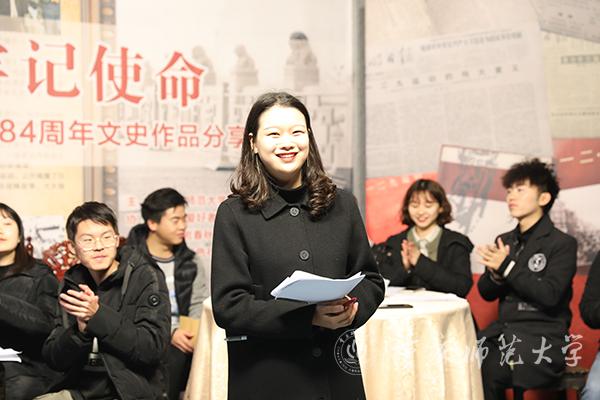 表演者既是分享者,又是学习者。参与了互动朗诵环节的新闻中心新成员陈霞表示,在活动现场展示朗诵时心情激动,同时对“一二·九”运动有了更深入的认识,其入党的决心也更为坚定。中特协会代表吴侬倚表示,先烈们的英勇与无畏仍旧让她心生感动与敬仰。且圆桌的形式让每个人都有所参与,有所收获,更好地展示了优秀传统文化,弘扬了爱国主义精神,唱响了社会主义主旋律。她感慨地说道,“有些人,有些事,我们真的不该去遗忘,而是应该、应当、必须把他们放在心上。”